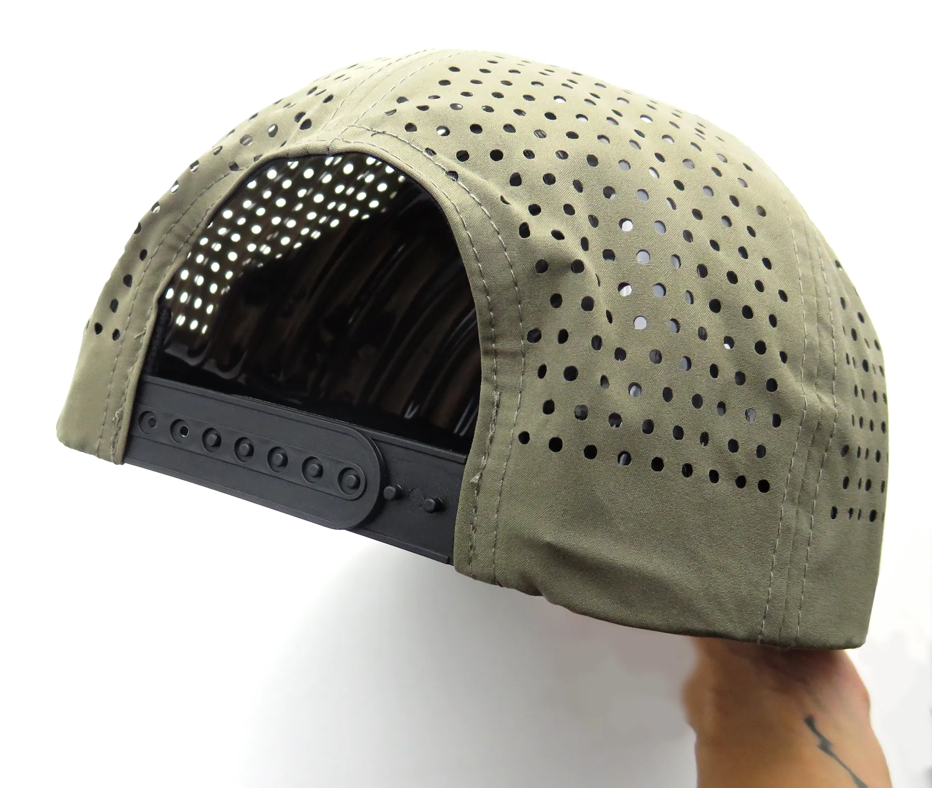 強い日差しをしっかり遮り、速乾性に優れたナイロン素材を採用した高機能キャップです。